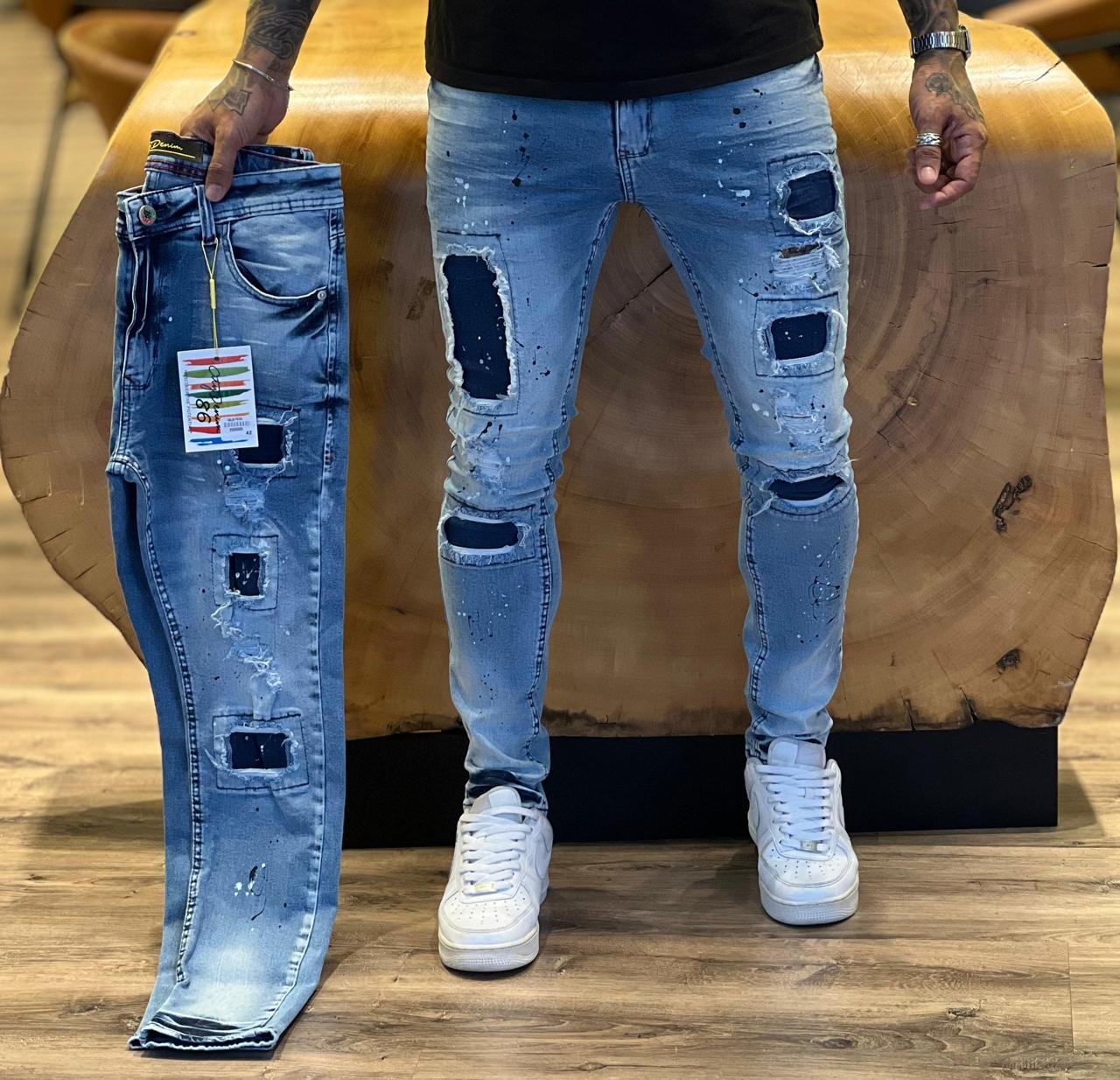 Produto: Calças jeans modelo jogador