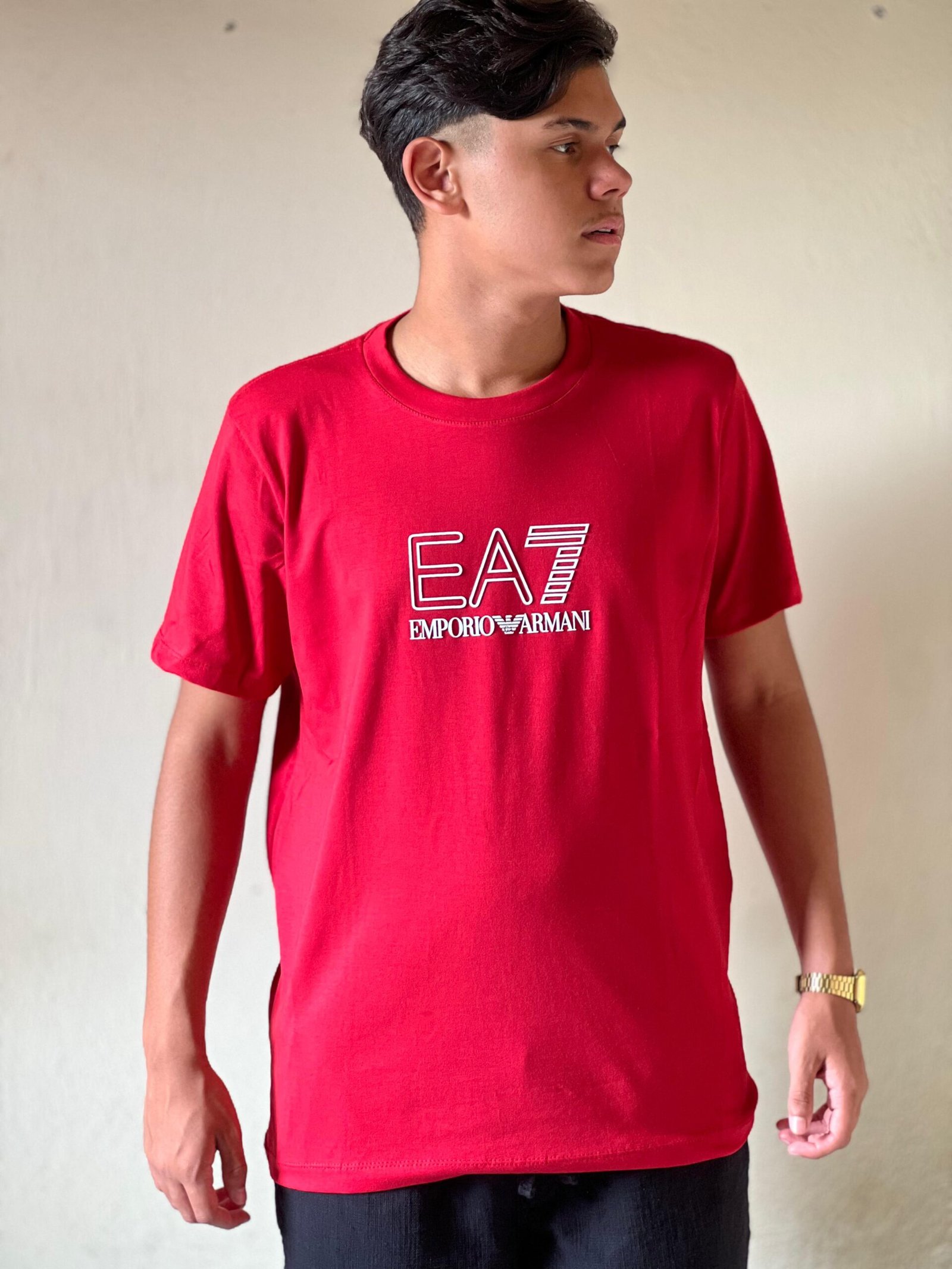 Camiseta Emporio Armani vermelha malha peruana