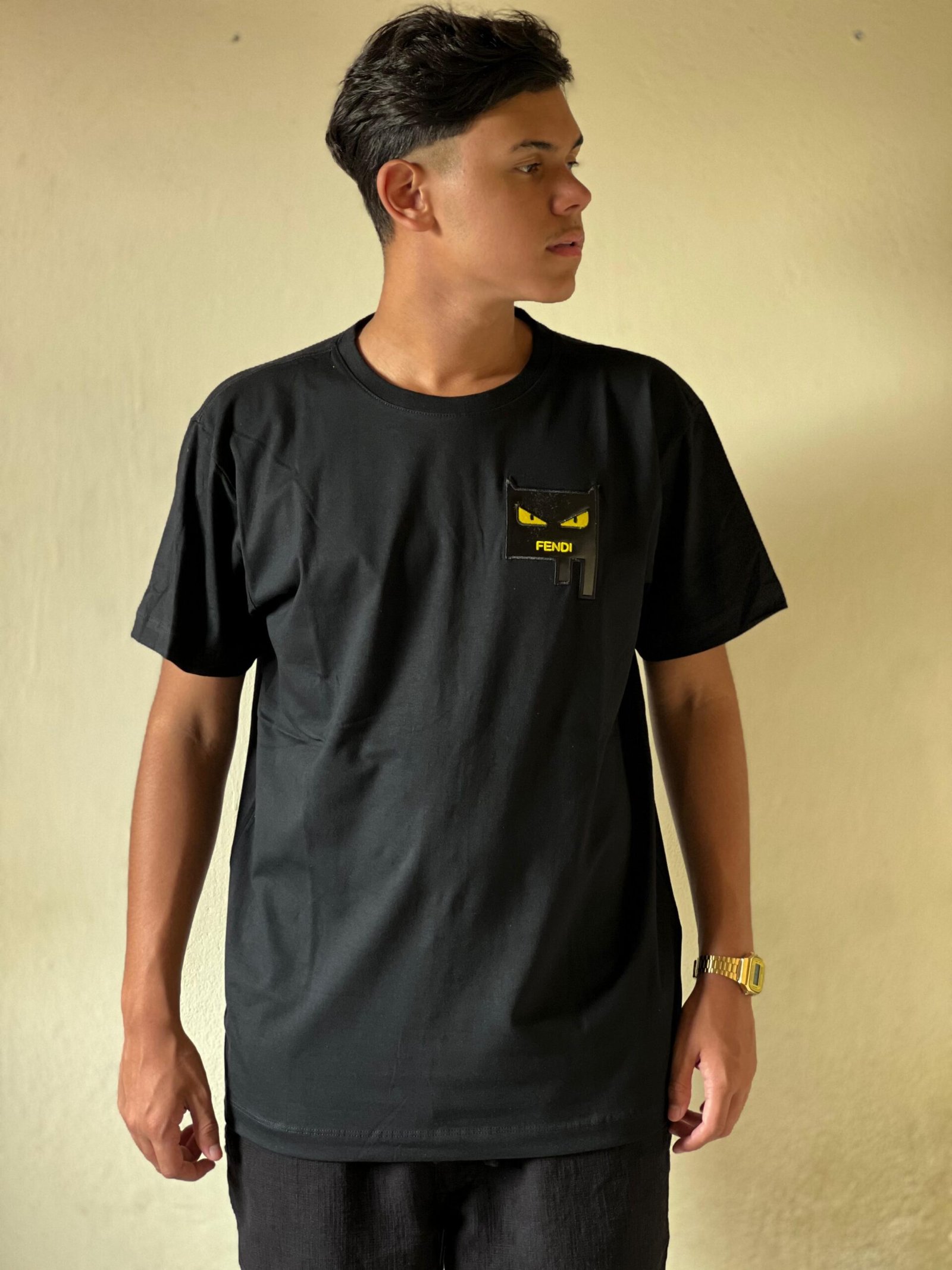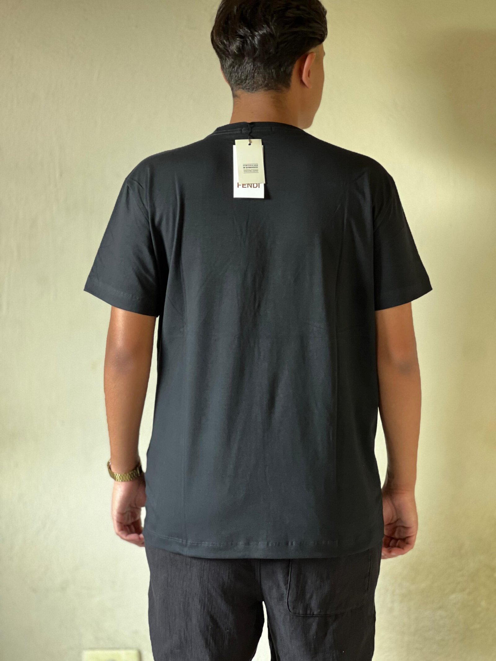 A camiseta preta da Fendi, confeccionada em malha peruana, une conforto luxuoso e estilo moderno. Com toque macio e caimento perfeito, esta peça destaca-se pelo design minimalista e pelos detalhes exclusivos da marca, que trazem sofisticação ao visual. Versátil e elegante, é ideal para quem busca uma combinação de funcionalidade e prestígio em qualquer ocasião.