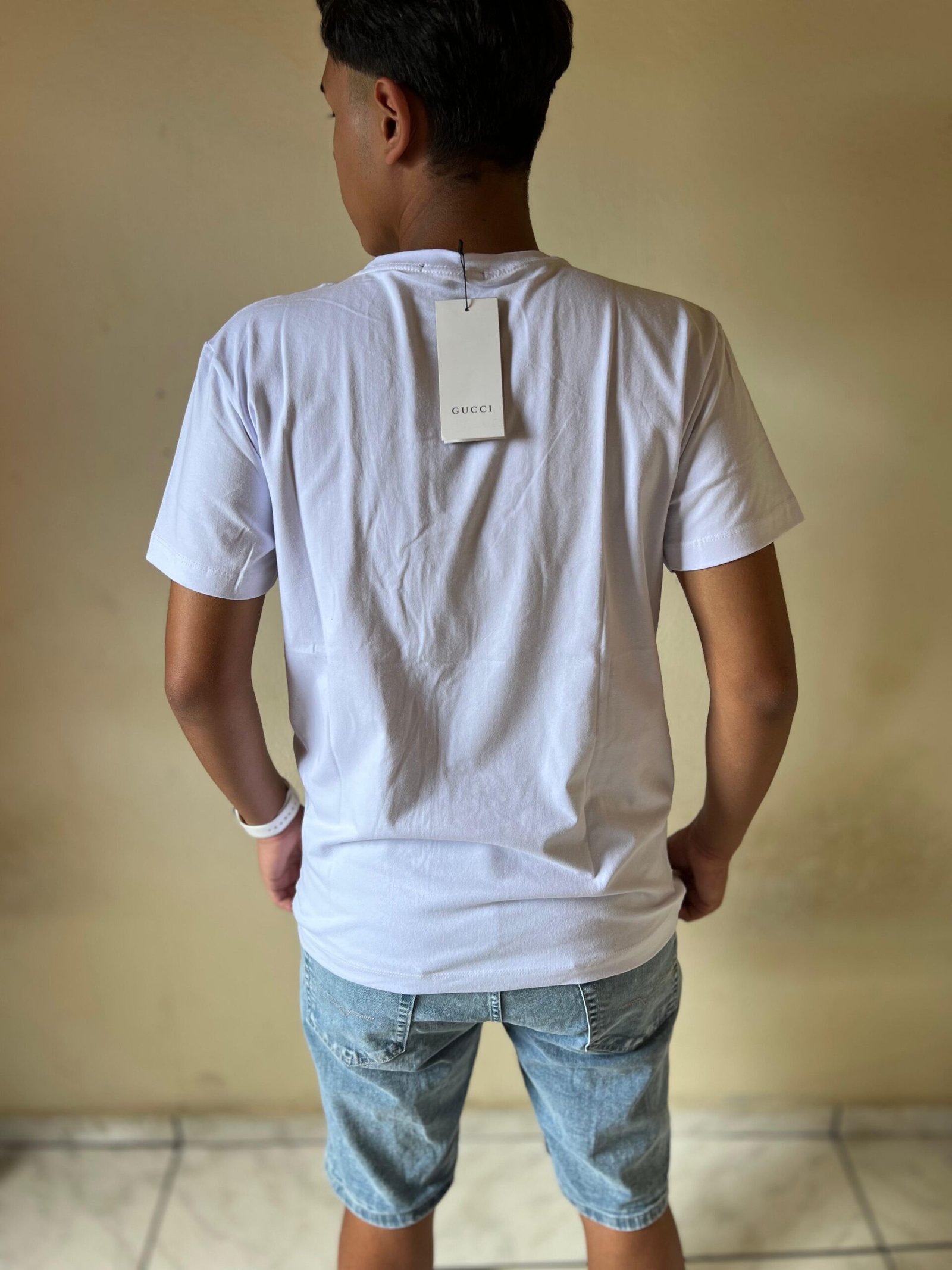 A camiseta branca da Gucci, confeccionada em malha peruana de alta qualidade, oferece um toque suave e conforto excepcional. Seu caimento impecável e tecido premium garantem durabilidade e sofisticação, enquanto o design clássico, com o logotipo discreto da marca, reflete a exclusividade e elegância características da Gucci. Ideal para quem busca versatilidade e estilo, essa peça é perfeita para looks casuais ou mais refinados, destacando-se pela sua autenticidade e sofisticação.