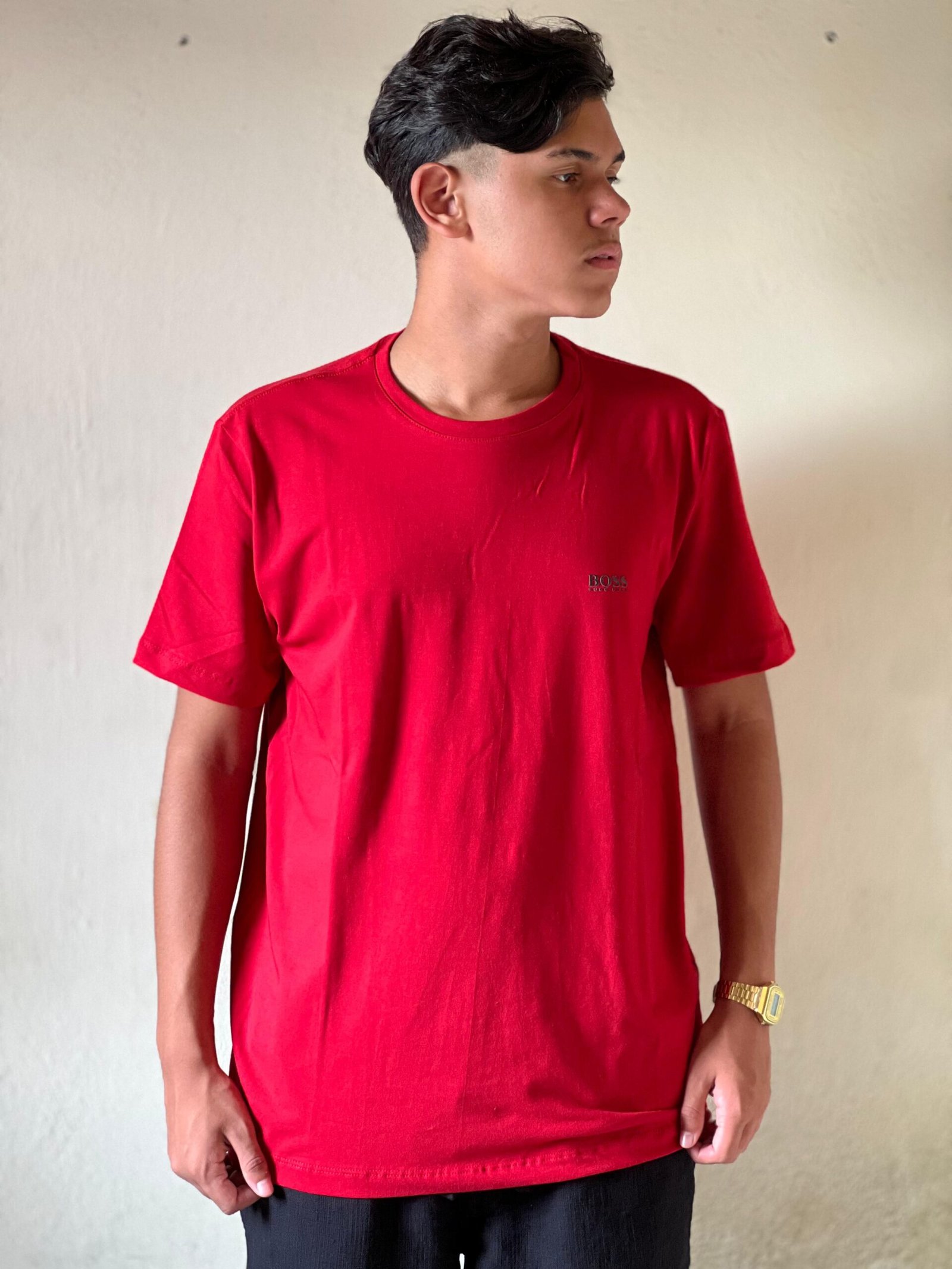 Camiseta Hugo Boss vermelha malha peruana