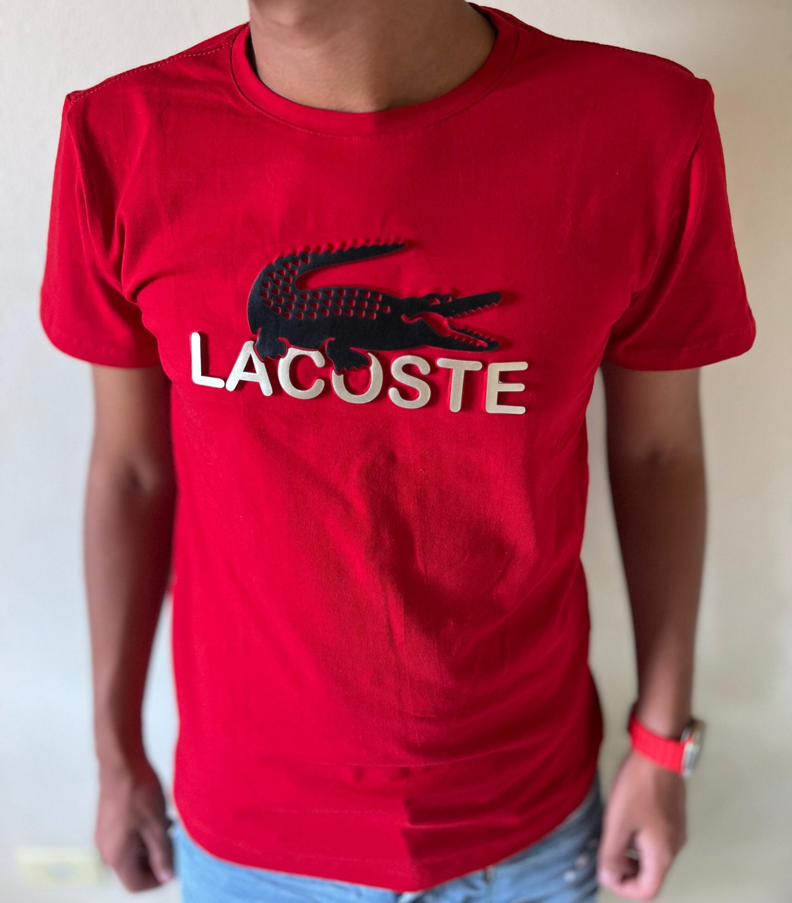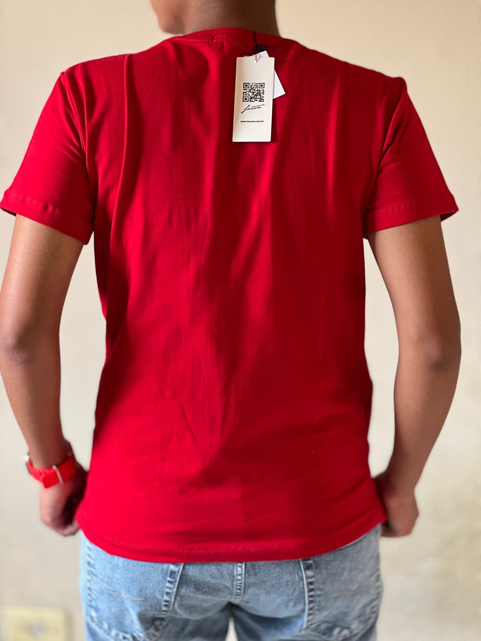 Camiseta Lacoste vermelha malha peruana